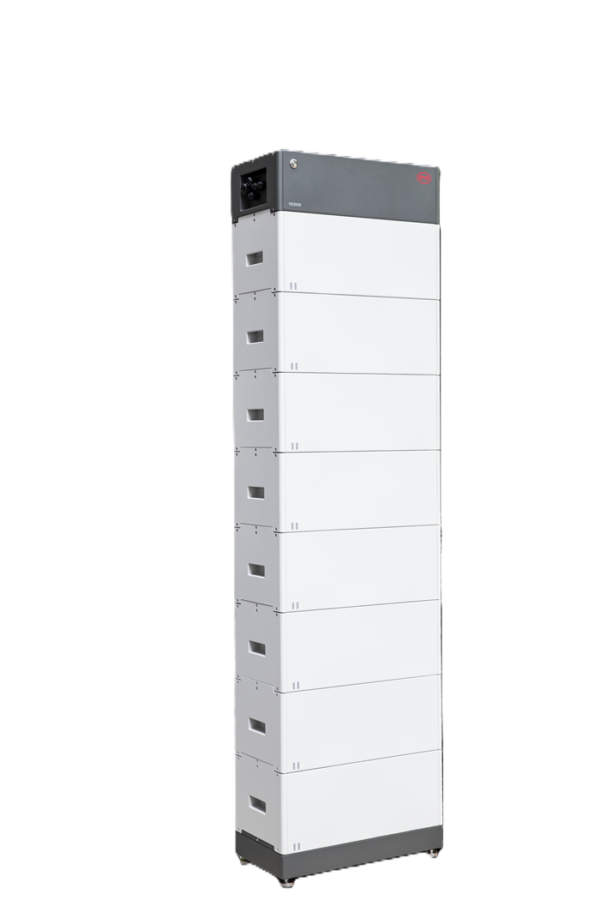 Premium HVS Schmaler, turmartiger Aufbau. Ideal für Anwendungen mit geringerem Energiebedarf, die hohe Leistung benötigen (z.B. kleinere Haushalte oder Notstrom). 5,1 kWh bis 38,4kWh
